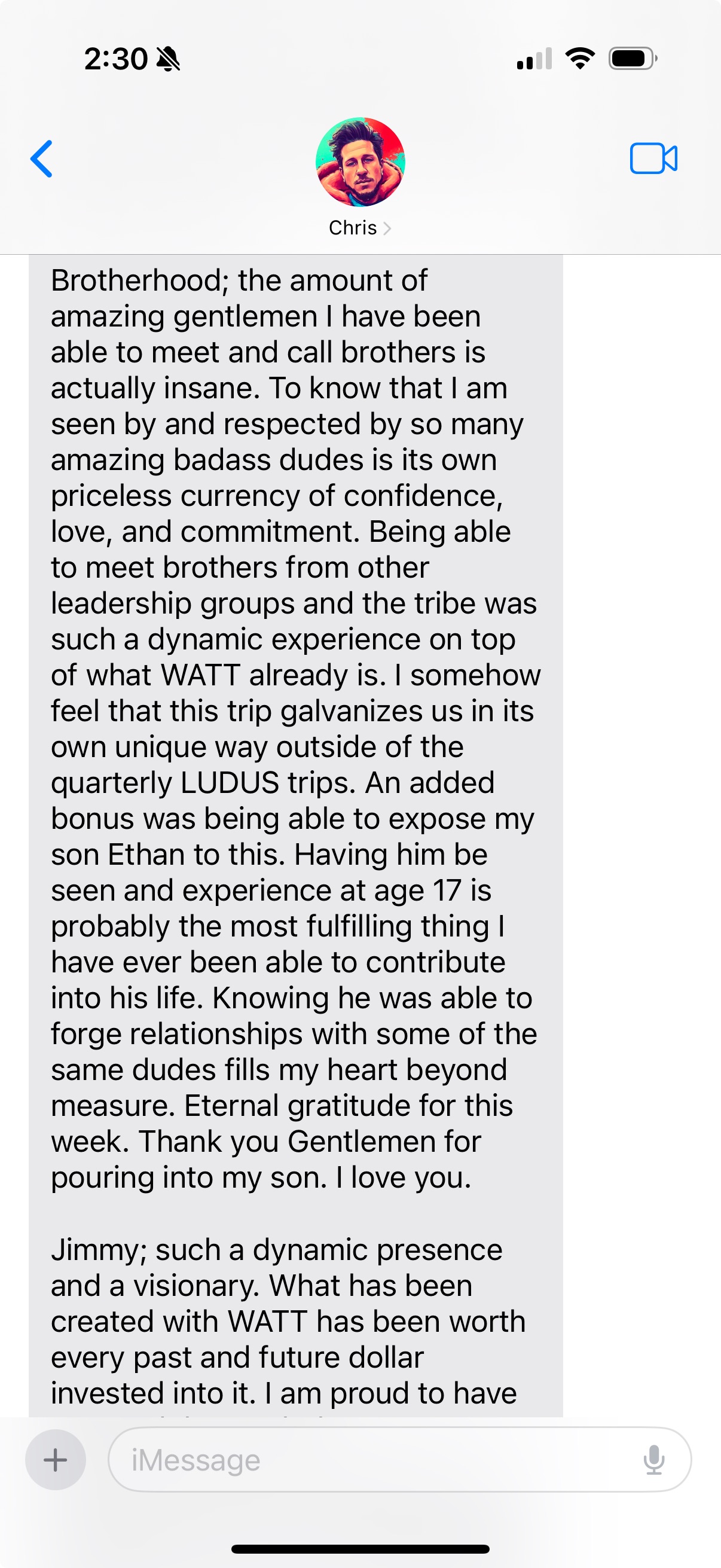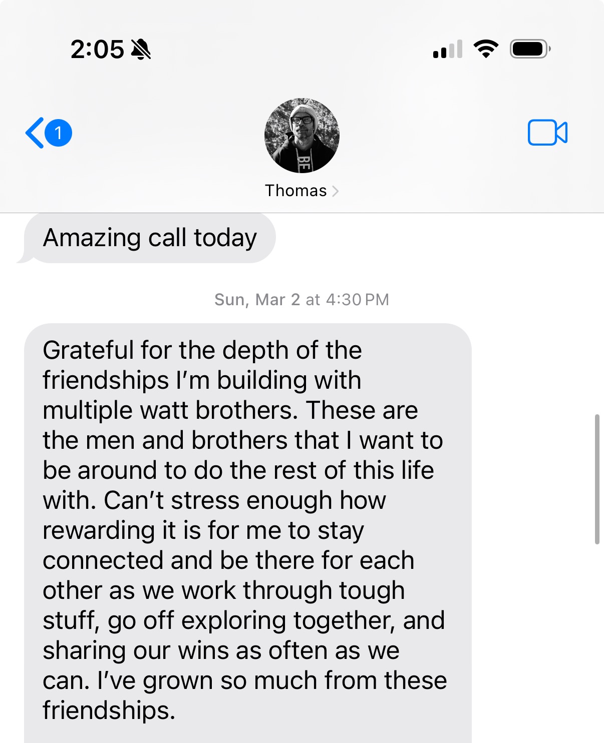 Since joining WATT, he has gained a deeper understanding of himself, learned the value of taking time for his own growth, and built strong, supportive friendships with other like-minded men. Every time he returns from a Ludas, I notice a renewed energy and clarity in him. It’s inspiring.