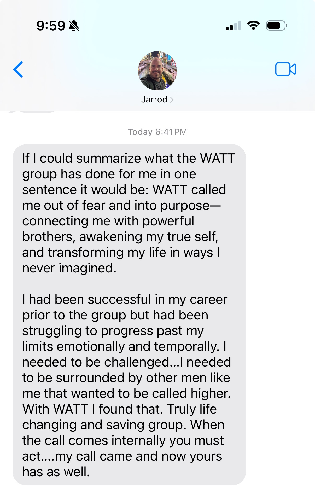 Hear about hundreds of men that have taken the jump and changed their lives by joining the WATT Movement.