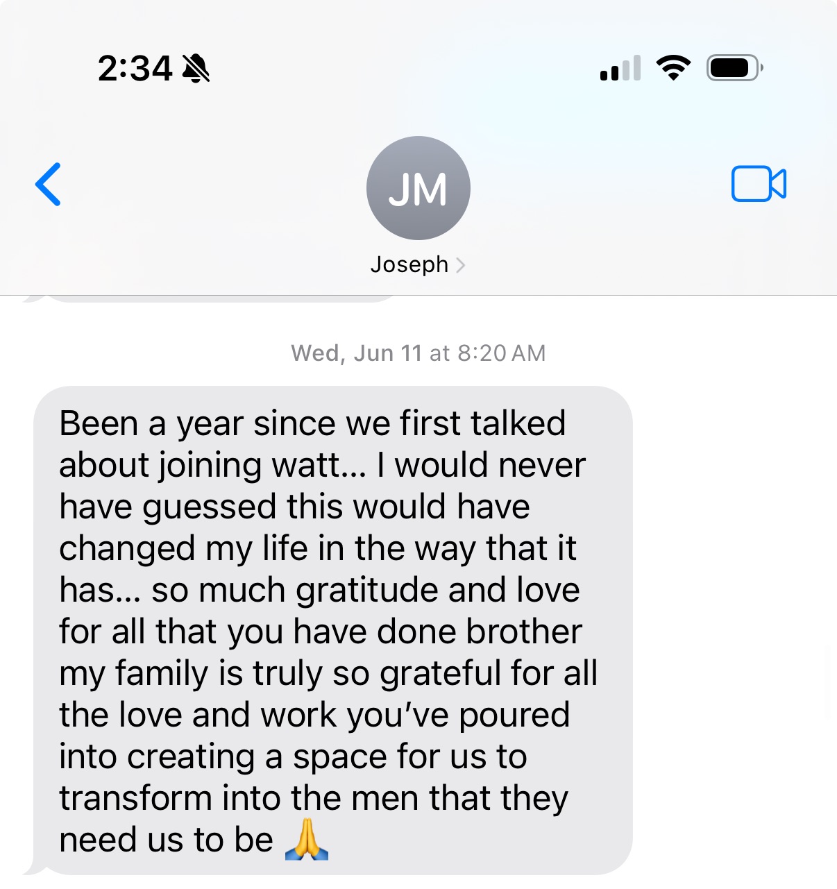 It’s a window into the lives of men who have committed to showing up for themselves, their families, and their purpose. As the wife of a WATT member, I’ve seen firsthand the growth and transformation this program has sparked in my husband.